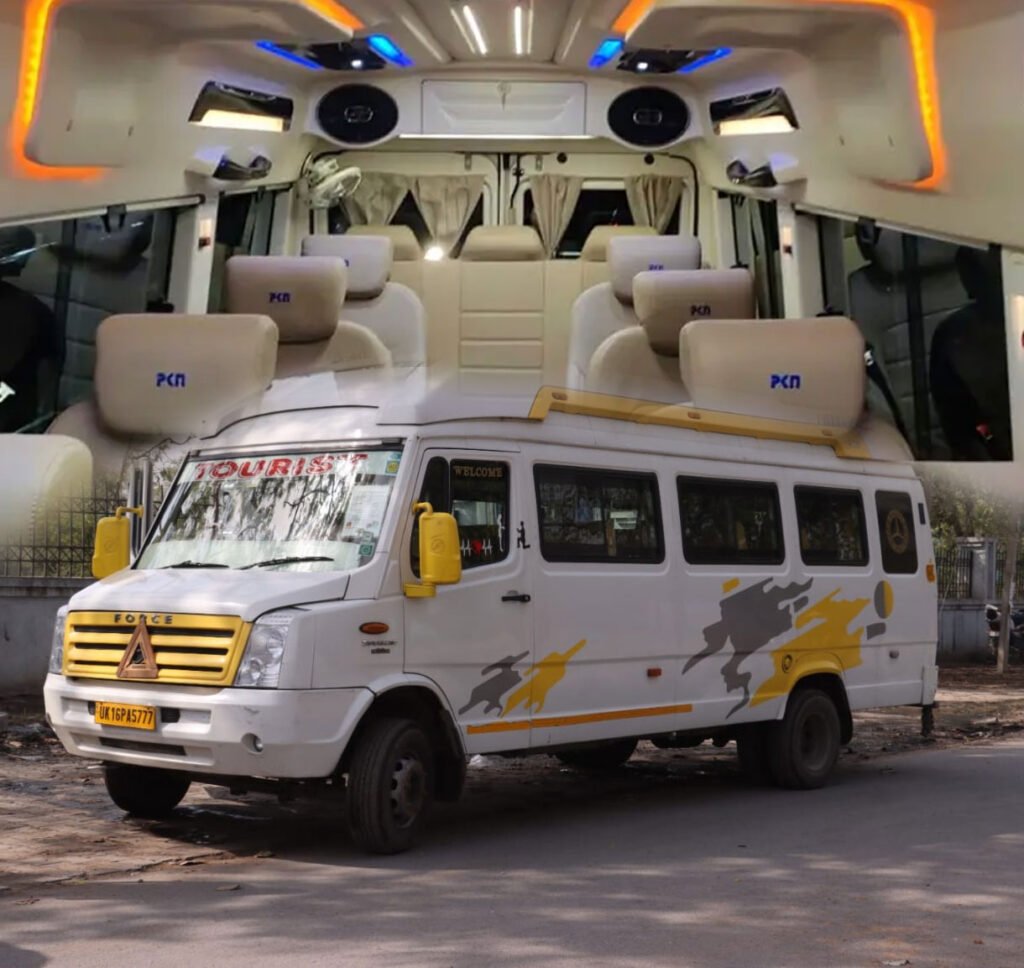 The price of the tempo traveller hire for customized India tours by Tempo Traveller Rent Gurgaon Private Tours is very economical. If you are traveling with a family of more than 12 members on board, it is always a better choice to look for options that help you avoid uncomfortable seating arrangements and make the travel journey more enjoyable instead of rough. Tempo Traveller has enough leg space to ensure that the journey is smooth and comfier. Whether you are planning a local day of sightseeing or a weekend getaway for your family or if you have to attend important family functions or for India private tours we will ensure that the joy of traveling together never fades away. Depending on your needs, the various options available to you are like 12 Seater Tempo Traveller. Tempo Traveller Rental Services provides transport service in Gurgaon for Gurgaon sightseeing and outstation trip. 12 Seater Tempo Traveller is one of most demanded tourist vehicle of India and has good latest facilities like pushback seat, neat clean curtain, available music facilities with LCD and available sofa in the back side of vehicle. Travel with 12 Seater Tempo Traveller Hire in Gurgaon with pushback seats and comfortable seats for a medium group tour. Whether you’re planning a family vacation, a group outing, or corporate travel, our spacious and well-maintained 12 seater Tempo Traveller on rent is the perfect choice for all your travel needs. Keeping safety as top most priority, we hire experienced drivers who keep your travel safe and entertaining throughout. We offer 12 Seater Tempo Traveller Rental in Gurgaon services from Gurgaon to Agra, Jaipur, Manali, Haridwar, Golden Triangle Tour, Rishikesh, Jammu & Kashmir, Nainital, Shimla, Rajasthan, Ranikhet, Dehradun, Chardham Yatra, etc.